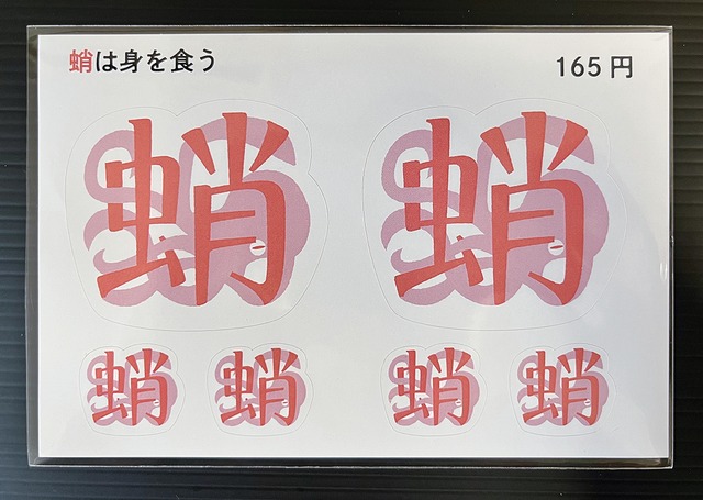 「蛸は身を食う」ステッカー 「食料がなくなると自分の足まで食べる」という蛸の習性から転じて、財産や資本を食いつぶすこと