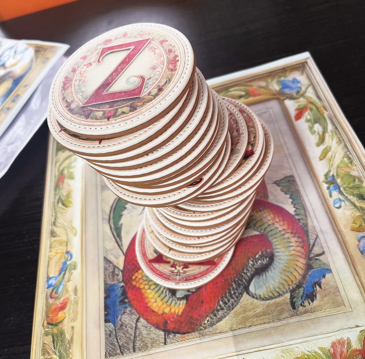 アルファベットコースター 丸型 「J」 素材 PUレザー サイズ 直径8.8cm×厚み0.7cm UV印刷