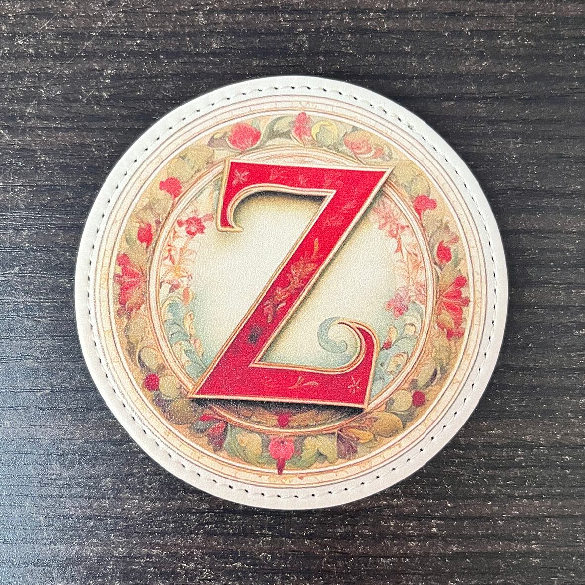 アルファベットコースター 丸型 「Z」 素材 PUレザー サイズ 直径8.8cm×厚み0.7cm UV印刷