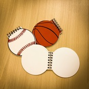 バスケットボール型のノートです。中身は無地です。10cmと手のひらサイズなので、ちょっとしたメモ帳にちょうどいいです。 サイズ:直径10cm(ノート部分)