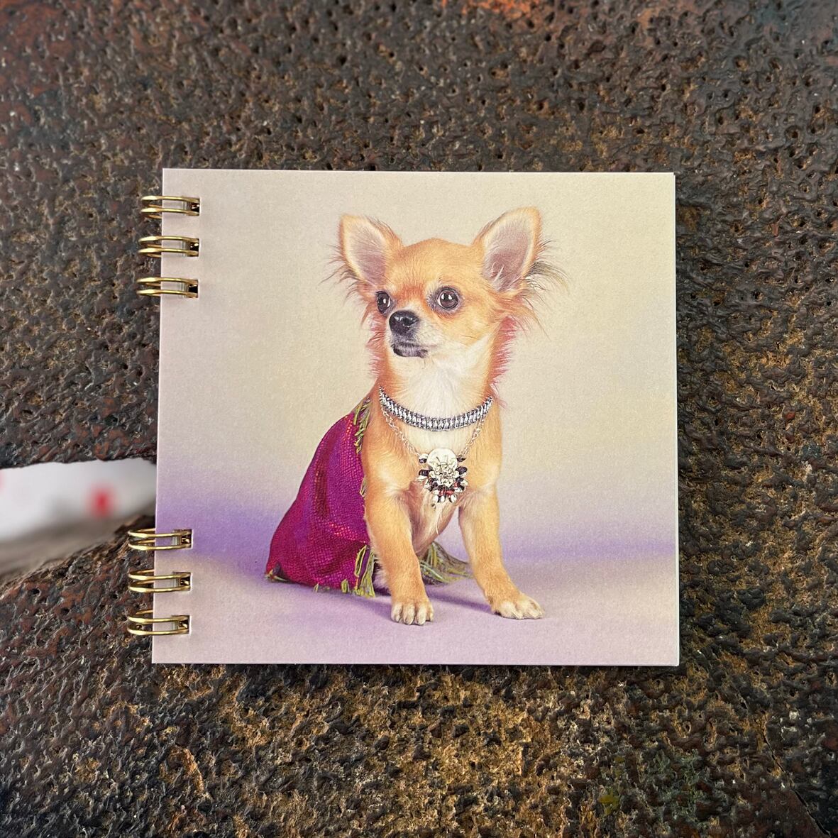 ミニノート(110mm-100mm)リングノート 無地 チワワ アンティーク絵柄